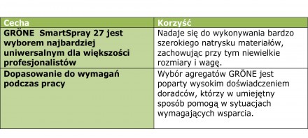 - GRÖNE SmartSpray 27 nadaje się do aplikacji farbami wodnymi, jak i rozpuszczalnikowymi.